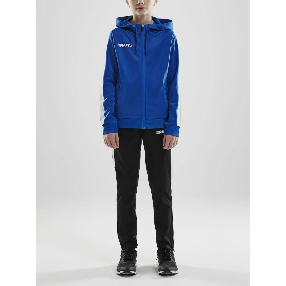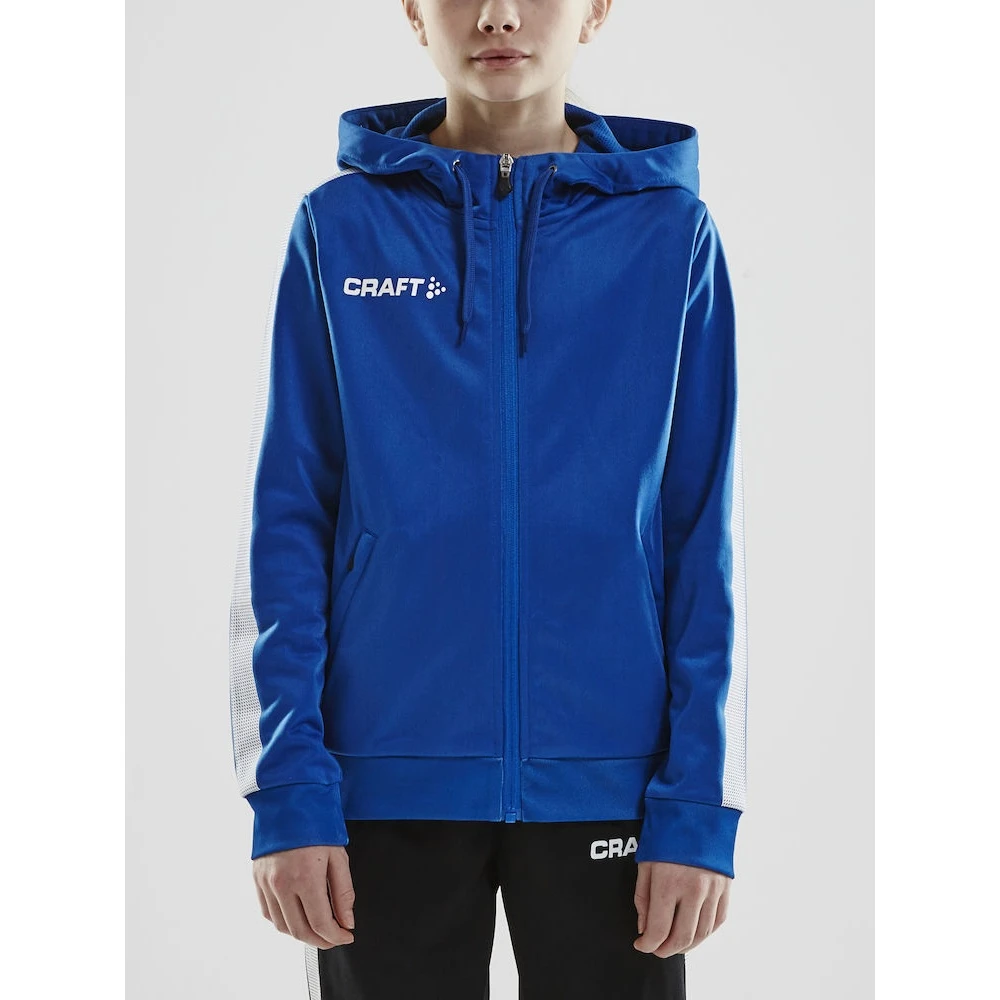 - bequeme Kapuzenjacke aus weichem und funktionellem Polyester für Aufwärmphasen und entspannte Momente abseits des Spielfelds