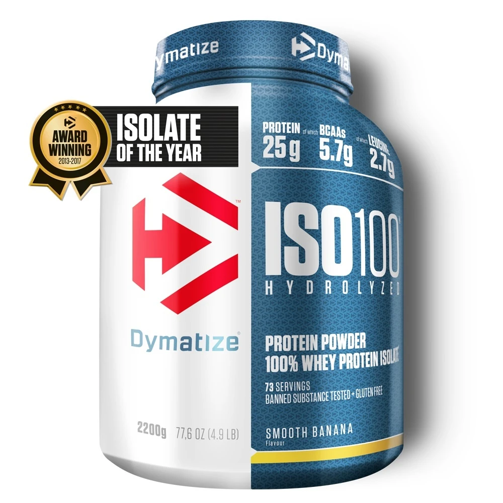 - ISO100 HYDROLYZED ist eine erstklassige Kombination aus hydrolysiertem Molkenproteinisolat und Molkenproteinisolat – die fortschrittlichste Rezeptur von DYMATIZE