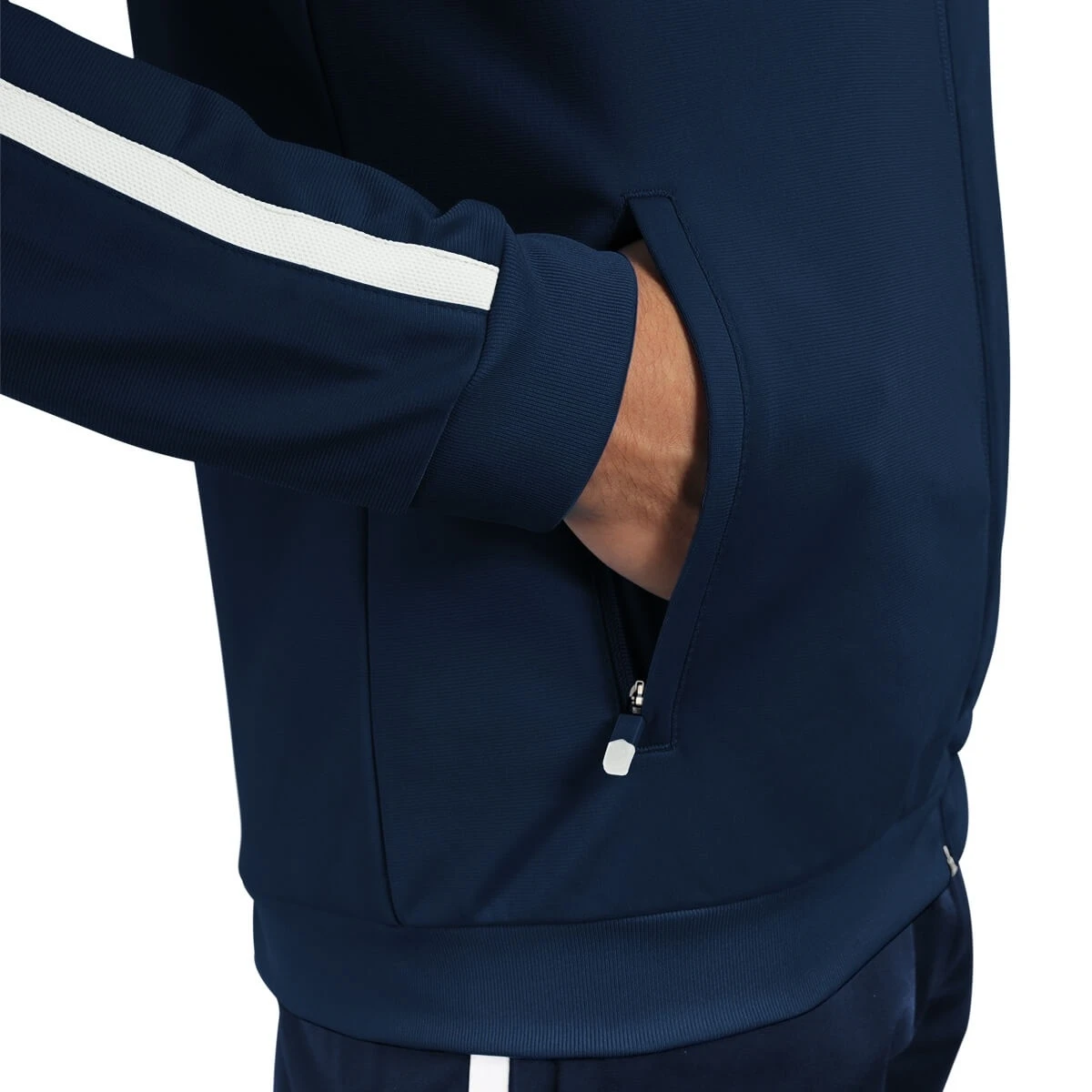 - Die stylischen Kontraststreifen an Ärmel, Schulter und Saum sowie der Jacken- und Ärmelabschluss mit Ripp sind typisch für die Optik der Teamline