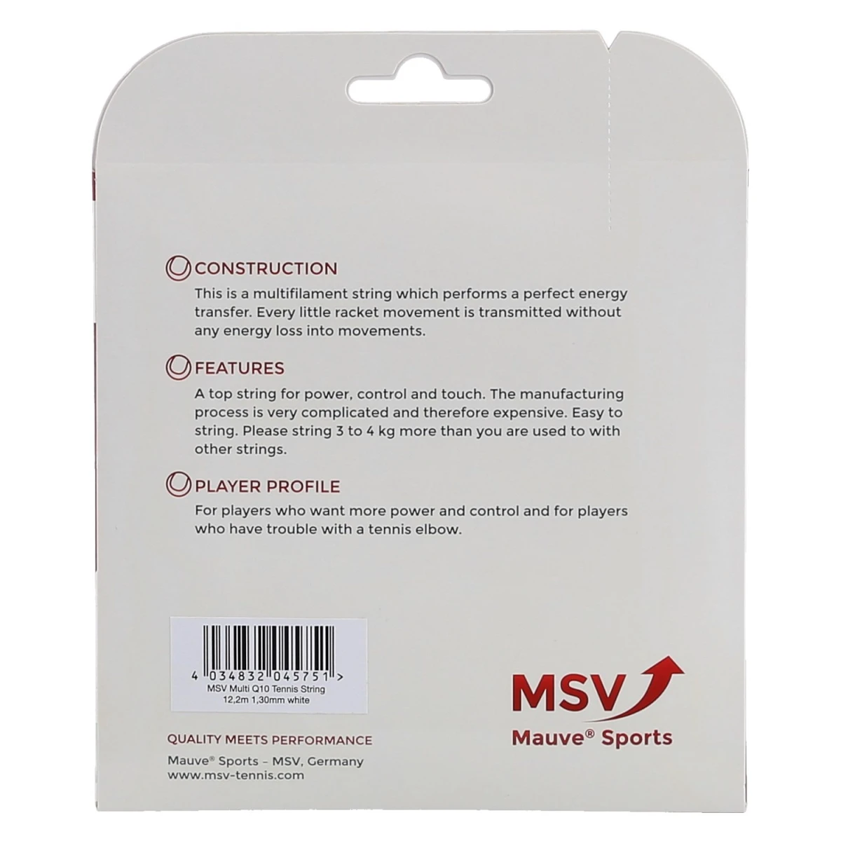 - die MSV Multi Q10 ist eine multifilamente Tennissaite, die jeglichen denkbaren Komfort bietet