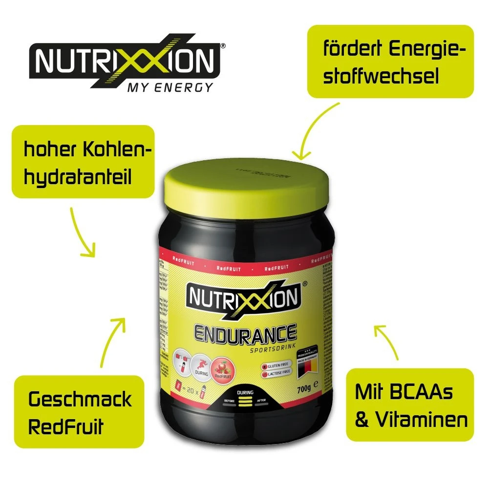 - Kohlenhydrate, Mineralien, BCAA´s, Magnesium, L-Carnitin machen den NUTRIXXION Endurance Drink zu unserem Allrounder