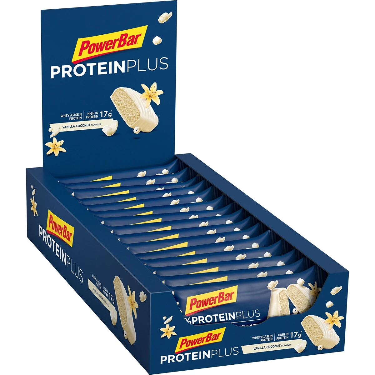 - Zutaten: Calciumcaseinat (aus Milch) (21%), weiße Schokolade (18%) [Zucker, Kakaobutter, Vollmilchpulver, Emulgator (Sojalecithine), Aroma], Oligofruktosesirup, Invertzuckersirup, Fruktosesirup, Molkeneiweiß (8%), Magermilchpulver, Sojaeiweiß (2%), Aromen, Emulgator (Sojalecithine)