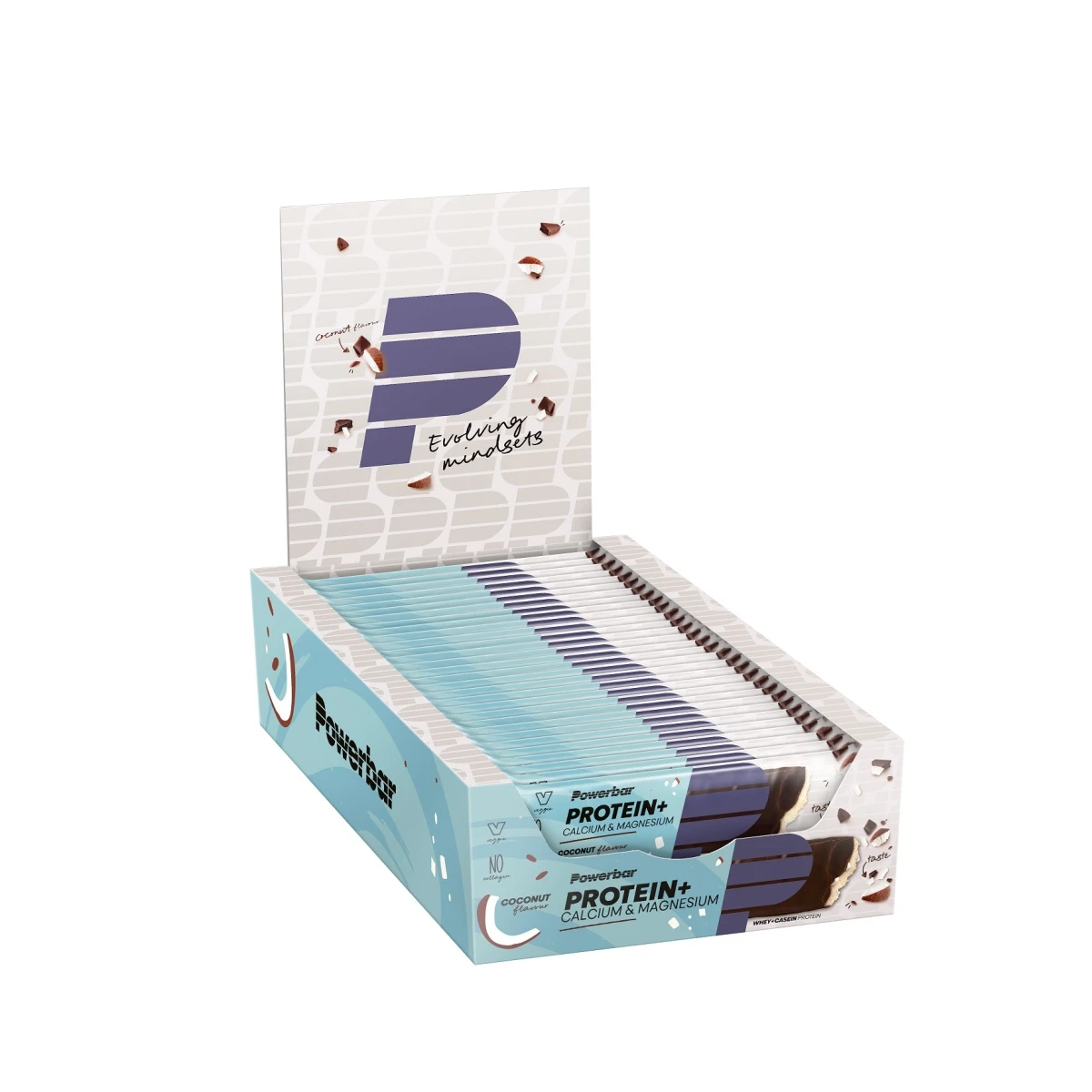 - Zutaten: VollMILCHschokolade (23%) [Zucker, Kakaobutter, VollMILCHpulver, Kakaomasse, Emulgator (Lecithine (SOJA)), Aroma], Glukosesirup, MILCHeiweiß (19%), Invertzuckersirup, Palmfett, Feuchthaltemittel (Glycerin), Kokosraspel (4,5%), Süßmolkenpulver (MILCH), Oligofruktose, Kokosnussmilchpulver (1,5%) [Kokosnussmilch, Maltodextrin, Natriumcaseinate (MILCH)], Erbseneiweiß (1%), Magnesiumcarbonat, Calciumcarbonat, Aroma, Emulgator [Lecithine (SOJA)]