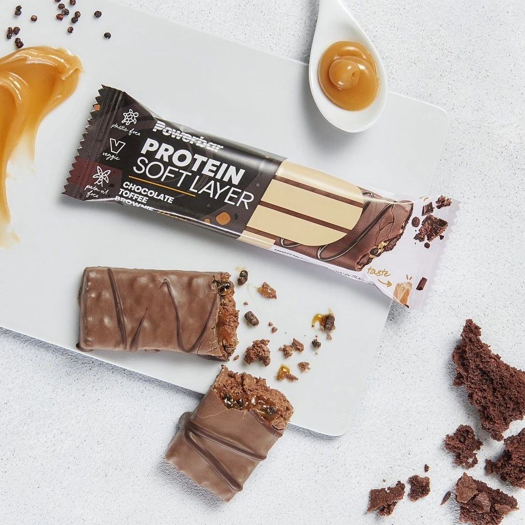 - unser Protein Soft Layer Bar liefert dir Protein in drei leckeren Schichten: eine cremige, softe Proteinschicht trifft auf eine zarte Toffeegeschmack-Schicht und knusprige Crispies – umhüllt von Milchschokolade
