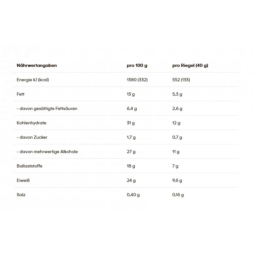 - Verzehrempfehlung: 1 Riegel pro Tag