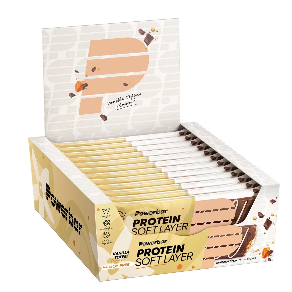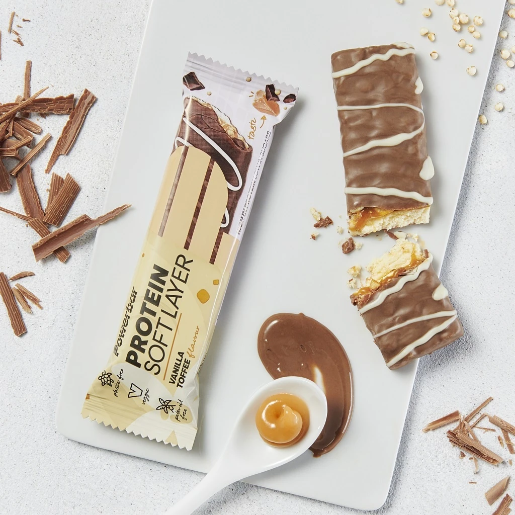 - unser Protein Soft Layer Bar liefert dir Protein in drei leckeren Schichten: eine cremige, softe Proteinschicht trifft auf eine zarte Toffeegeschmack-Schicht und knusprige Crispies – umhüllt von Milchschokolade