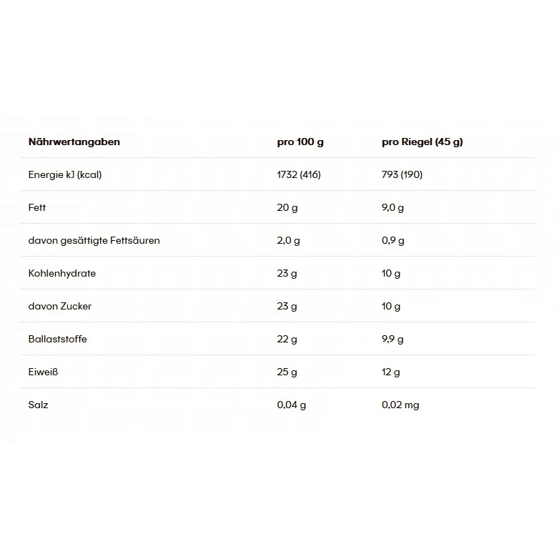 - Verzehrempfehlung: 1-2 Riegel pro Tag