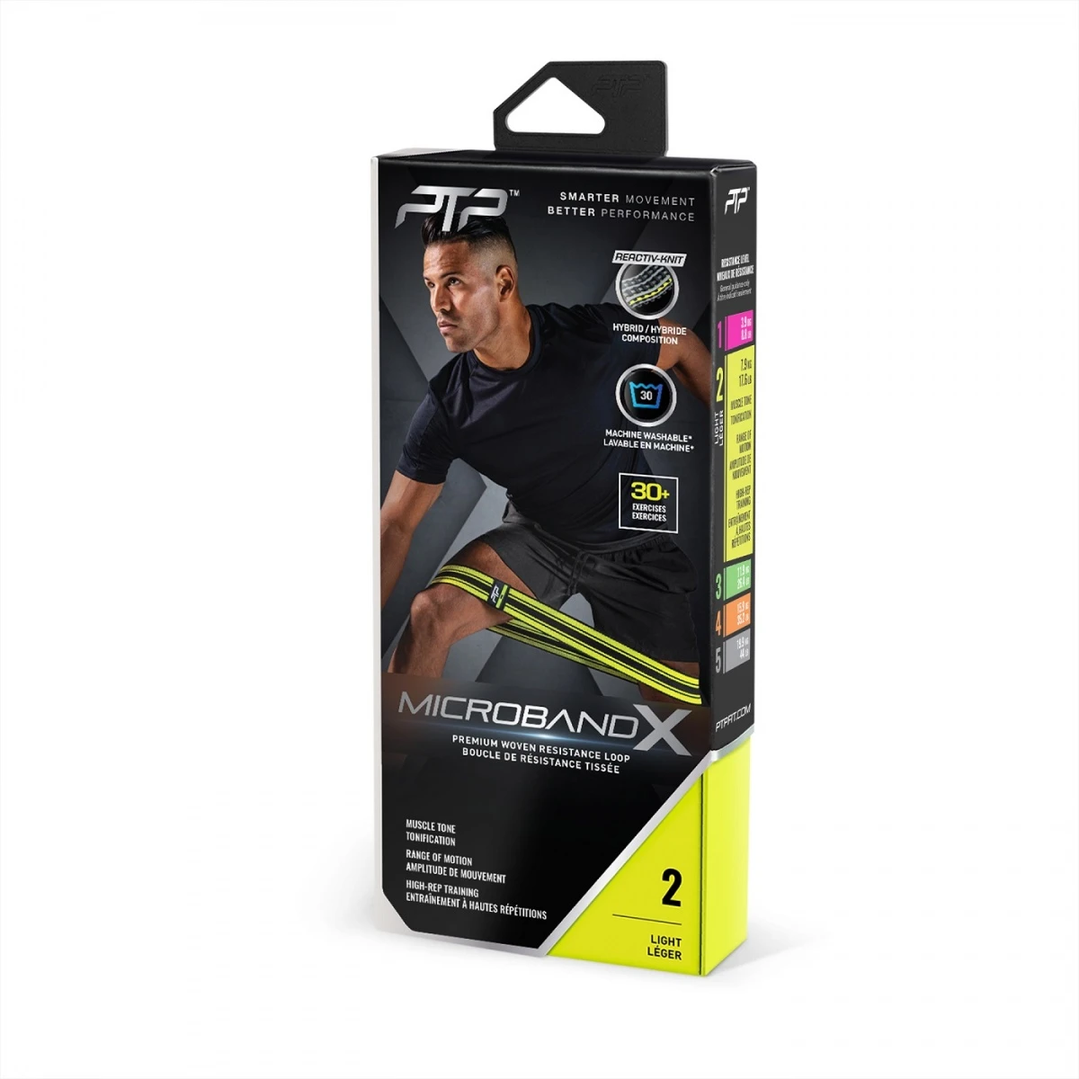 - mit dem innovativem „Reactiv-Knit“ wurde das MicroBand X entwickelt, um Ihre Hüften, Gesäßmuskeln, Beine und Schultern zu stärken, ohne sich einzurollen oder zusammenzukleben