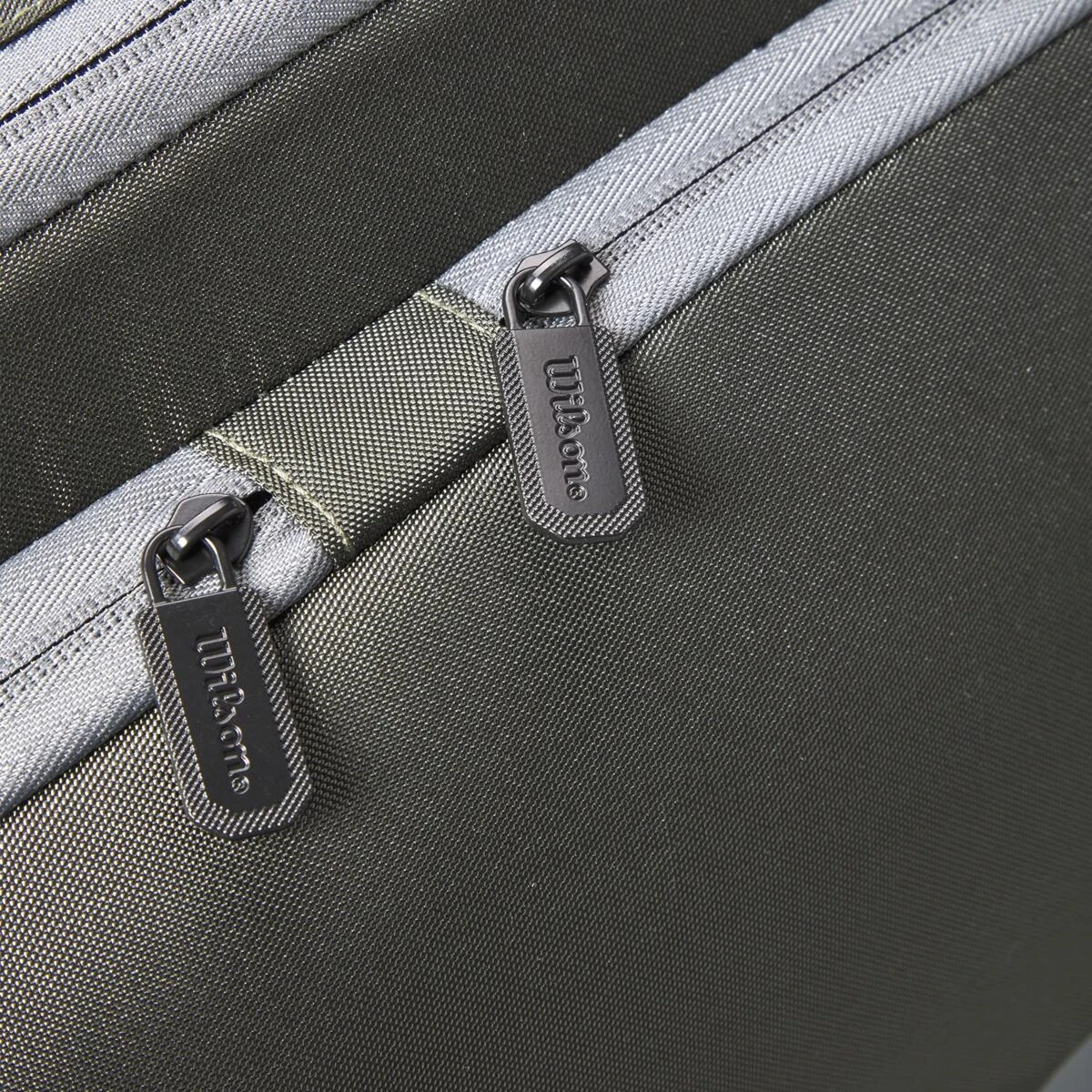 - die Tour 12er-Tasche von Wilson in der modischen Farbe Stone hat zwei separate Reißverschlussfächer für Ausrüstung (bis zu 12 Schläger) und Bekleidung