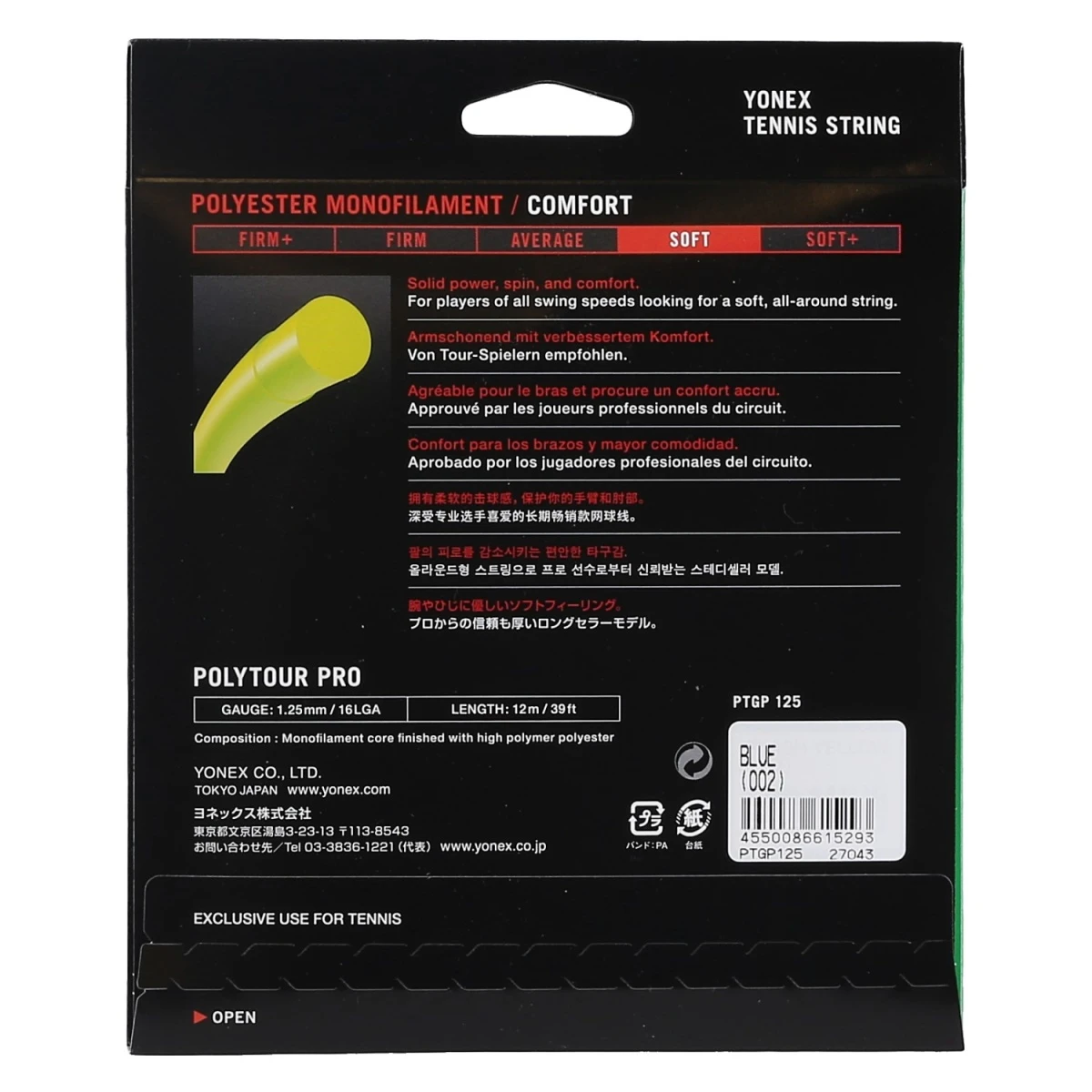 - hoch haltbare Polyestersaite, nun auch von Yonex-Topspielern gespielt