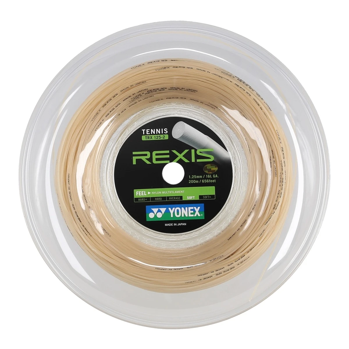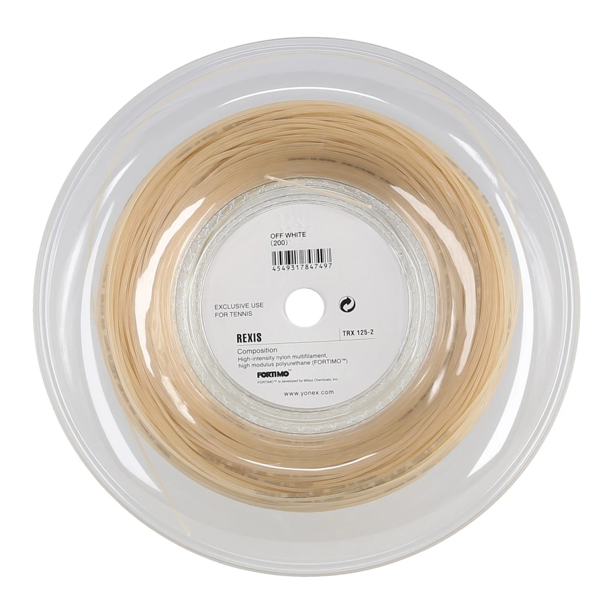 - dank innovativem „FRF“ (Fusion of Resin Filament) Produktionsverfahren sorgt die neue REXIS Saite für langanhaltende Power und hohe Haltbarkeit